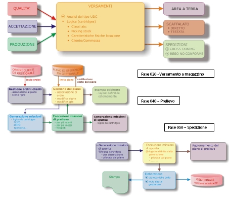 Il sistema si avvale di una piattaforma base e da una serie di personalizzazioni che lo integrano perfettamente nella realtà operativa del Cliente. Questo si ottiene con una micro analisi dei flussi logistici e la predisposizione di procedure e maschere apposite.